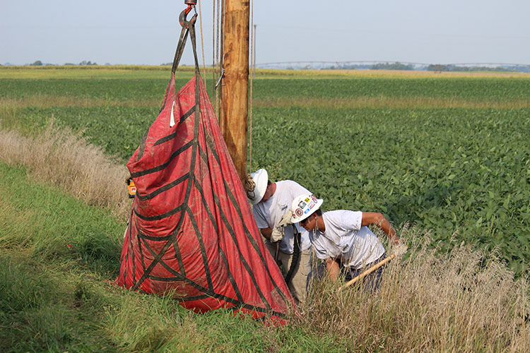 OPPD apprentices first complete two years of instruction at an accredited line school, earning an associate’s degree. Once they meet all requirements of the degree, the new potential apprentices must complete a boot camp. OPPD uses the event to select the best apprentices for open positions. Then, once hired by OPPD, they complete an additional four years as an apprentice. Those four years involve tests of knowledge, on-the-job training and hands-on exercises like the Saunders County line.