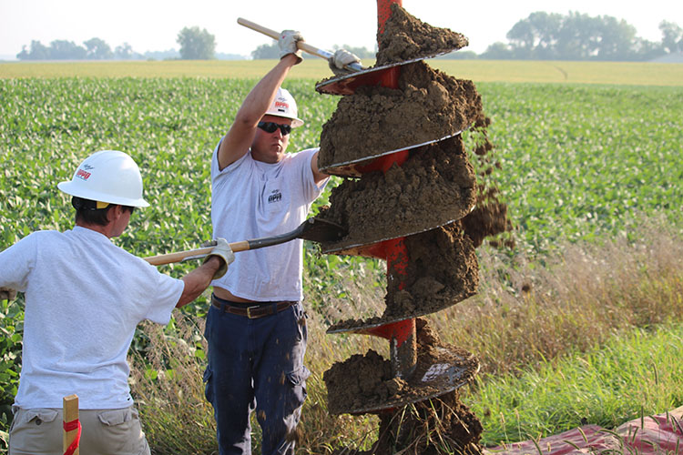 Ten OPPD apprentice line technicians spread out in three crews of three and one crew of four along a county road in Saunders County Monday morning. They eyed the job ahead: building a three-phase line near a nearby agribusiness facility.
