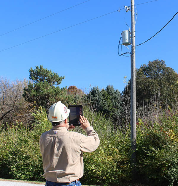 Gary Wohlman uses an iPad in the field to process work orders for pole replacement.