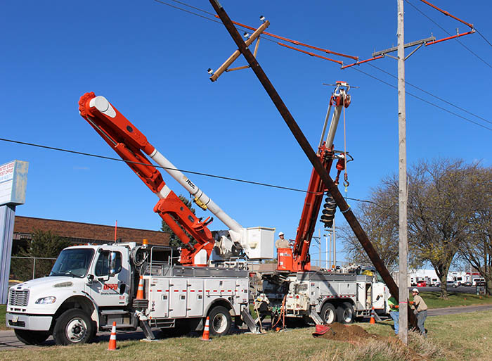Woodworth was referring to the weather, yes, but also to the work he, Madler and fellow line tech Jason Cavanaugh were doing. The trio were replacing poles along Fort Crook Road in Bellevue.